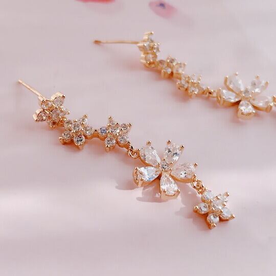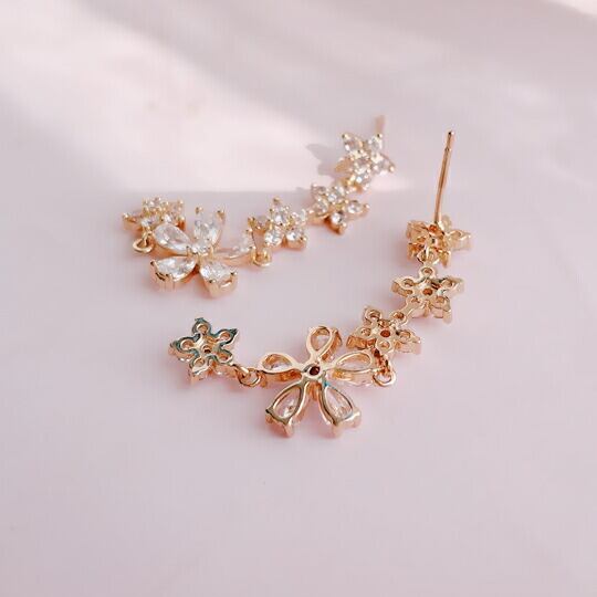 Leafy 顔周りにエレガントな印象を演出するモチーフを、日差しの季節に映える贅沢なダイヤ使いで 向きを変えながら配した5輪のフラワーモチーフが耳に沿うデザイン ゴールド色とCZダイヤがよりピュアな輝きを放ちます ギフト 花 x09420a 2月誕生花