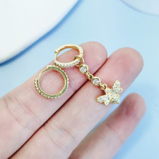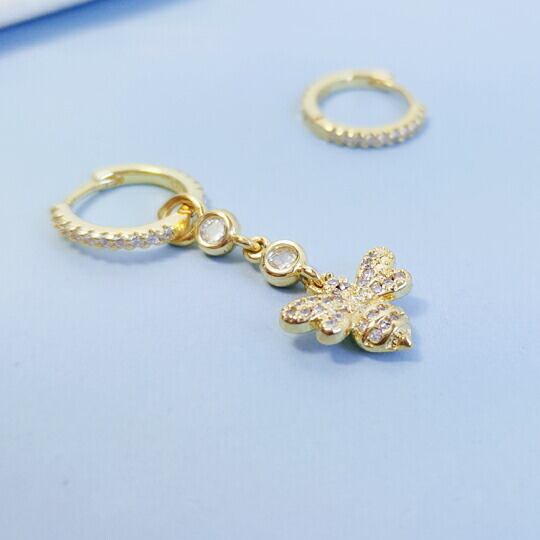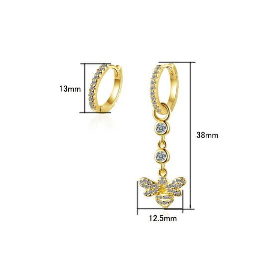 Leafy蜂のモチーフが可愛らしいCZダイヤピアス キュービックジルコニアがアクセントに輝きます 大人の遊び心ある、ユニークなデザインアクセをお楽しみ 幸運の象徴 ミツバチ 可愛らしいデザインでありながら、お守りアクセにも 左右非対称 個性派 春 x09423ag
