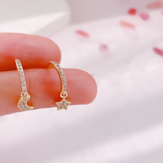 Leafy 三日月と星、神秘的な魅力を持つ2つのモチーフフレンチピアス 美しく輝くCZダイヤモンドをセット 付けやすいサイズ感でどんなスタイルにも合わせやすく デイリーからオケージョンまで活躍します ムーン&スター 普段使い お出かけ ゆらゆらx09432ag