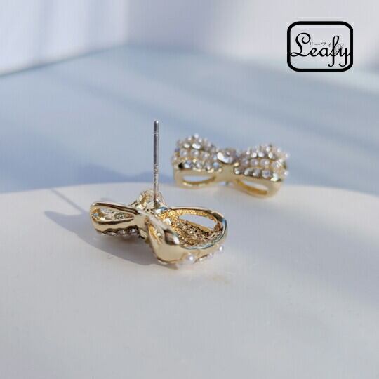 Leafy 結びつけることを表し、約束 絆などの意味が込められているリボンモチーフピアス 主張しすぎないサイズ感でどんなシーンにも活躍してくれるピアス 女性の心をくすぐるデザインで、毎日のコーディネートのアクセントに ベビーパール ラインストーン x09455a