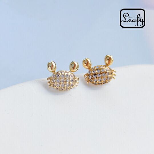 Leafy カニをモチーフにしたCZダイヤピアス ゴールド×キュービックジルコニアが美しく、小さくても存在感は十分 今にも動き出しそうなリアルなポーズもポイント 水辺の生き物デザインは夏にぴったり マリンテイストな大人かわいいアクセ 蟹 星座 かに座 海x09460ag