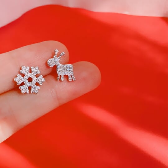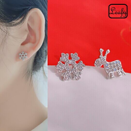 Leafy 可愛いトナカイ&雪の結晶左右非対称スタッドピアス キュービックジルコニア クリスマス イヴ アニマル 動CZダイヤ 物 鹿 冬 ウィンター かわいい キュート 人気 おしゃれ お出かけ パーティー 二次会 誕生日 デート 普段使い プレゼント x09466a