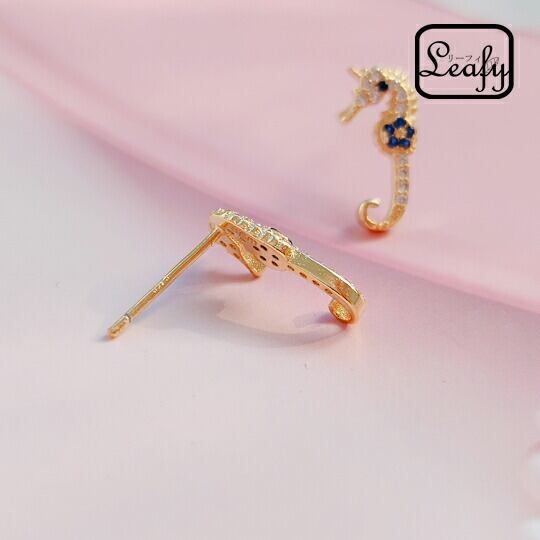 Leafy ヨーロッパでは古来より幸せの象徴として愛されタツノオトシゴCZダイヤピアス 全身にキュービックジルコニアが埋め込まれています 程良い大きさで耳元に気品を漂わせます 大人のきちんとスタイルから華やかなシーンまで活躍するアイテム たつ 辰 辰年 x09471a