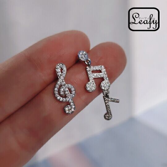 Leafy キラキラの音符&ト音記号CZダイヤアシメピアス 16分音符したに8分音符がぶら下がっていますとド音記号モチーフ左右非対称ピアス 音符モチーフは人の心を豊かにしてくれると言われている人気の高いデザイン 音楽好きに喜ばれるプレゼント 発表会 x09476as