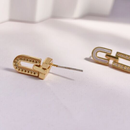 Leafy チェーンの一部をモダンアートのようなになったデザインピアス ハードな装いにも、フェミニンやモノトーンといった正反対な装いにもコーディネートしやすいアイテム マザーオブパール&キュービックジルコニアはみずみずしい光のきらめきを表現 本金メッキ x09485a