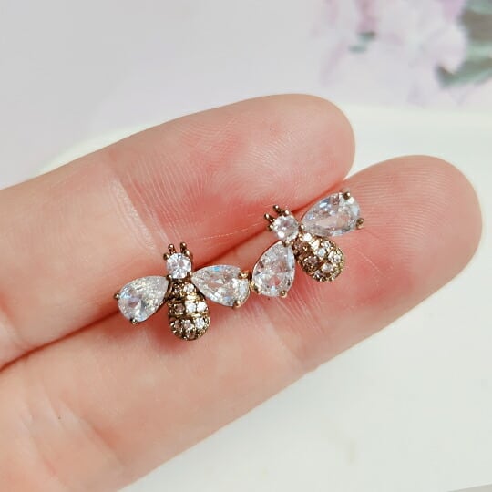 Leafy 生き物モチーフの中でも人気の高い、"幸運の象徴”の可愛らしいミツバチがピアス 幸運を運ぶといわれる蜜蜂が背負う「純粋」「繁栄」といった意味を持つといわれるCZダイヤアクセ 可愛らしいデザインでありながら、コーディネートが楽しくなる一品 春 x09488a
