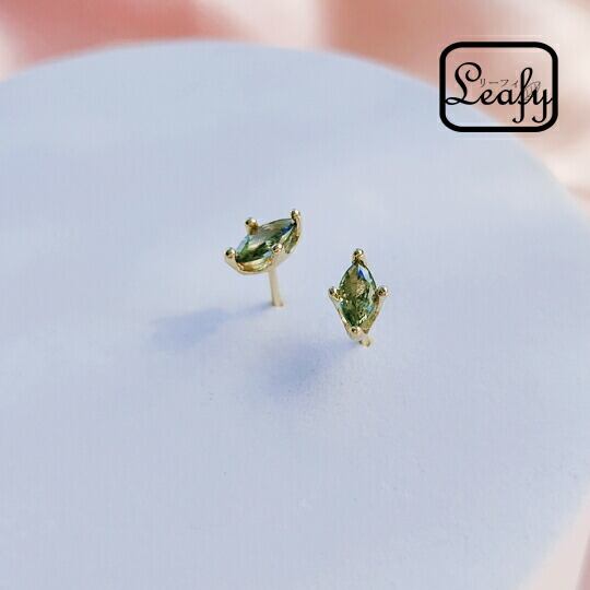 Leafy マーキスに美しくカットされた一粒ペリドット色ジルコニアスタッドピアス シンプルなデザインでデイリーからビジネスシーンに、定番ジュエリーとしてお使い頂けるピアス ホールが複数ある方は、他のピアスとのコーディネートをお楽しみ下さい x09489a 8月誕生石