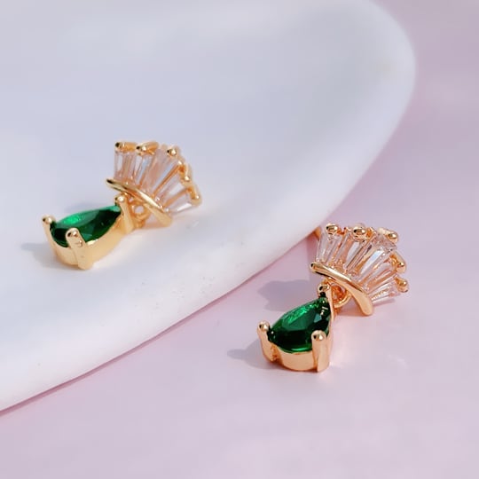 Leafy 柔らかいイメージのペアシェイプカットエメラルドグリーン色CZダイヤピアス 美しい透明感を持ちながらも、色濃く鮮やかなキュービックジルコニアでシンプルなデザインのピアスに仕上げました コーディネートに落ち着きと上品さをプラス x09505a