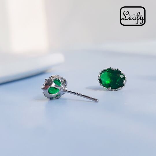 Leafy シンプルな一粒オーバルカットのエメラルドグリーンCZダイヤピアス 控えめなサイズ感が、オン オフで活躍します CZエメラルド 自分用やプレゼントにもオススメ 見た目もすっきりしてフェイスラインを引き立ててくれます 小さめ アンティーク x09507as
