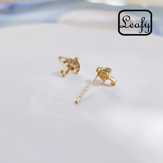 Leafy かさをモチーフにしたプチっとサイズのCZダイヤピアス 憂鬱になってしまう雨の日も、耳元にきらめく傘のアクセサリーを身に着けて、楽しく晴れ晴れとした気分で過ごせます シンプルなデザインなので、デイリーからオフィスまで幅広いシーンでお使えます x09510a