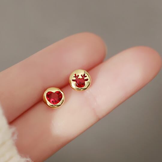 Leafy 円形フォルムの中に閉じ込めたルビー色の一粒石のキュービックジルコニアがクリスマスナイトとハートモチーフピアス 立体感がありながら軽い、ボリューム感が目を引く素敵なピアス 小さいぶり CZダイヤ クリスマス限定 可愛い 透明感高い赤いCZ x09516a