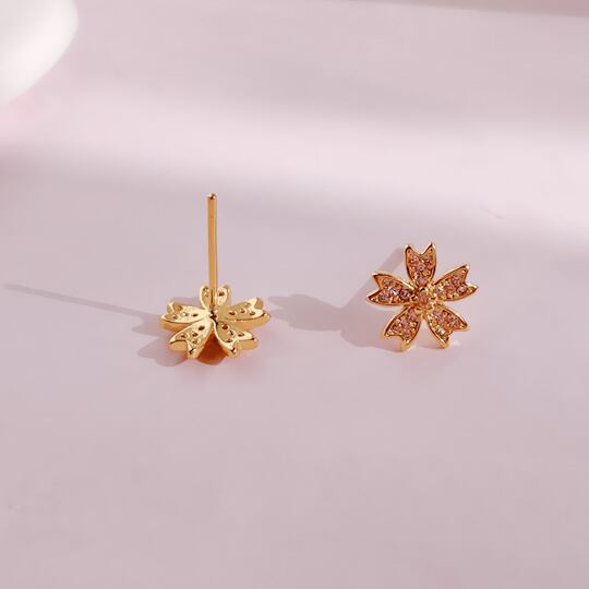 Leafy 花言葉には「優雅な女性」「心の美しさ」のさくらモチーフピアス 春のあたたかな雰囲気を感じる1点 花びら一つ一つにはCZダイヤモンドを配し、動くたびさりげなく輝きます 耳元にアクセントを加え、顔周りに華やかさと上品さを演出してくれます x09518a