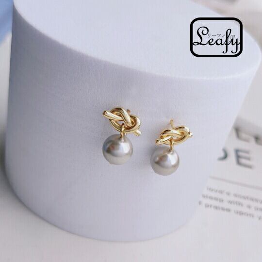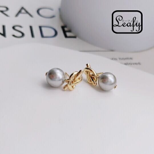 Leafy 揺れるパールときゅっと結んだデザインの結び目が目を惹くピアス ノットデザインとパールがやわらかな印象で、遊び心がありながら女性らしさを感じるデザイン カジュアル 普段使いはもちろん、スタイリッシュなデザインなのでパーティーにも x09533a