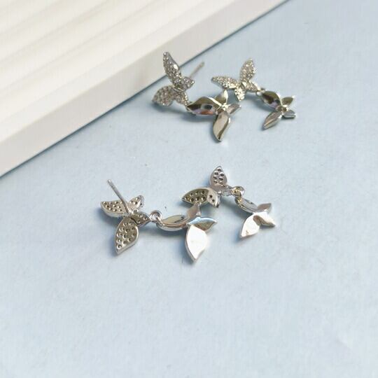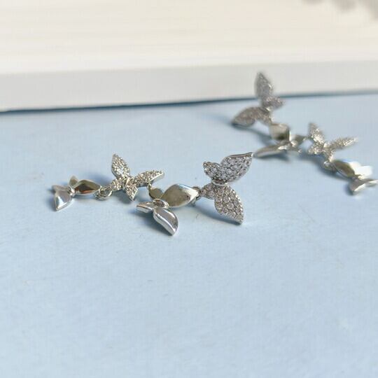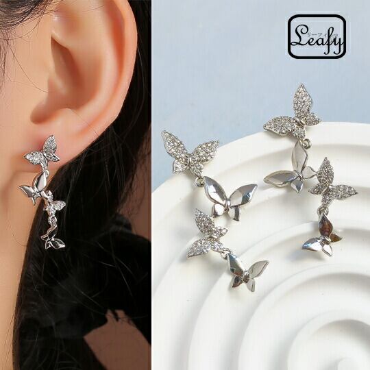 Leafy 蝶々の軽やかに飛び舞う様子をインスペアされたデザインのロングピアス シンプルなコーディネートのポイントになり、目が引く華やかなデザインで心躍るアイテム 美しい羽を広げる可憐なバタフライを眩い輝きを放つキュービックジルコニアを敷き詰め x09540a