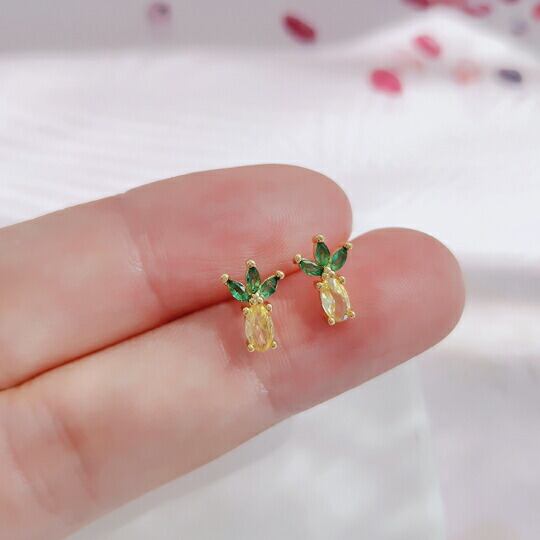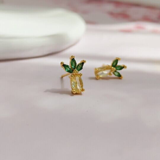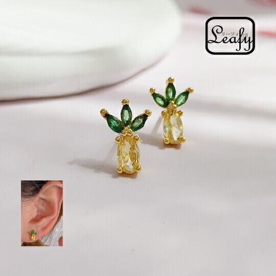 Leafy 南国の風を感じさせるパイナップルデザインのミニピアス キュービックジルコニアを使用したこのアクセサリーは、黄色と緑色の石が組み合わさって、まるで本物のパイナップルのような鮮やかさと立体感を演出 小ぶりながらも存在感のあるデザイン x09564a