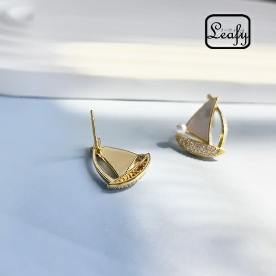 Leafy 自由 成功 優雅さを象徴するヨットモチーフピアス 白蝶貝の帆が特別なひかりを放ち、高級感を演出 CZダイヤが敷き詰められたこのピアスは、順風満帆や困難を乗り越えるといった意味合いも持ち、身に着ける方に特別なメッセージを届けます プレゼント最適 x09602ag