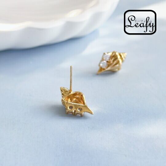 Leafy 魔除けや幸運の象徴のほら貝をモチーフにしたキュービックジルコニアピアス CZダイヤが美しく敷き詰められ、夏のシーサイドにぴったり 日常の装いに取り入れることで、さりげない華やかさを演出 良い知らせや幸運を呼び込む 涼しげな印象を与えます x09603a