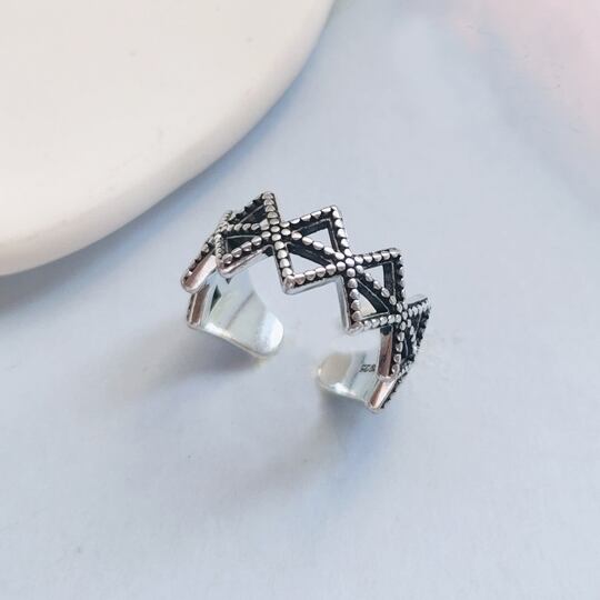 リング 指輪 フォークリング サイズフリー レディース メンズ 男女兼用 ユニセックス アンティーク調 ビンテージ風 レトロ 菱形 ひしがた 三角 幾何学模様 人気 おしゃれ お出かけ パーティー 誕生日 デート 普段使い プレゼント Terse S925 メンズ レディース rs0097a