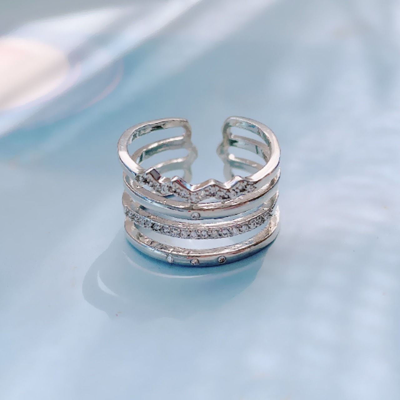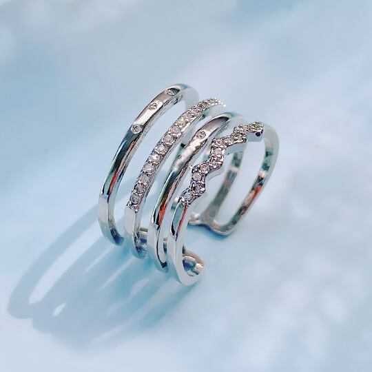 Terse スタイリッシュなシルバー☆重ね付けをしているような、ジルコニアを散りばめた4連風リング レディース 指輪 フォークリング 微調整可 程よいボリューム感 お出かけ イベント デート 結婚式 二次会 お呼ばれ パーティー 普段使い プレゼント rs0168as