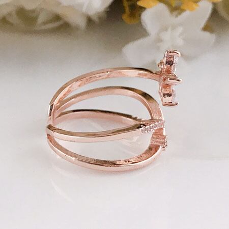 Terse フェミニンなピンクゴールドとジルコニアフラワー☆お洒落感満載のクロスラインリング レディース 指輪 フォークリング 微調整可 お出かけ イベント デート 結婚式 二次会 お呼ばれ パーティー 普段使い プレゼントrs0173apg 4月誕生石