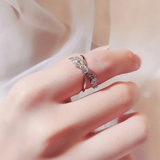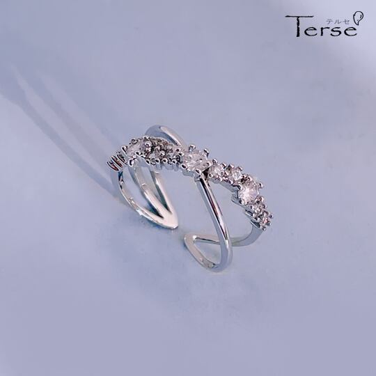 Terse 手元に上品さを添えるシルバー☆シンプルラインとビジューラインがクロスする大人女性のリング レディース サイズフリー 指輪 フォークリング rジルコニア お出かけ デート お呼ばれ パーティー 二次会 女子会 食事会 普段使い プレゼント rs0174as