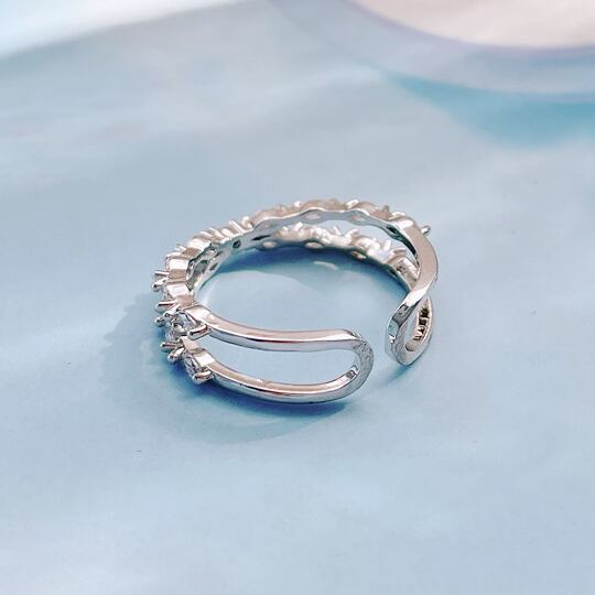 Terse ジルコニアが輝く☆繊細で華やかシルバーのクロスリング レディース サイズフリー 指輪 バレンタイン お出かけ デート お呼ばれ パーティー 二次会 女子会 食事会 普段使い rs0175as