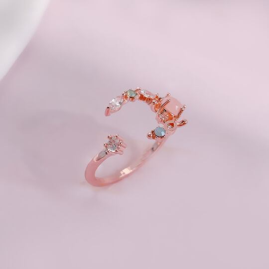Terse メインカラーのピンクが優しさを放つ☆三日月のようなフォルムのおしゃれビジューリング レディース サイズフリー 指輪 バレンタイン ジルコニア お出かけ デート お呼ばれ パーティー 二次会 女子会 食事会 普段使い rs0180apk