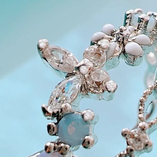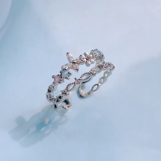Terse 花冠のようなラブリーなフォークリング レディース サイズフリー 指輪 フラワー リボン 蝶 バタフライ ジルコニア ビジュー ビーズ 花かんむり ティアラ 二連 ダブル お出かけ デート お呼ばれ パーティー 二次会 女子会 食事会 普段使い プレゼント rs0184as
