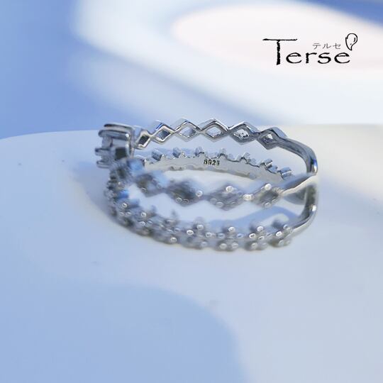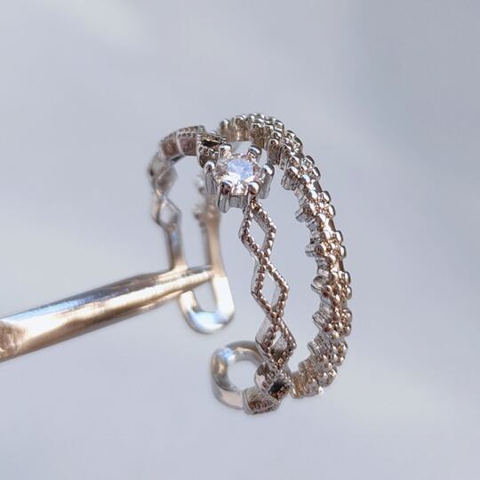 Terse センターには一粒CZダイヤの輝く 二連のシルバーフラワーラインが、まるで2本のリングを重ねづけしている様なデザインリングです 繊細なミルグレインを施したラインがクラシカルな雰囲気 プレゼント 女性らしい ロマンティック 普段使い rs0188a