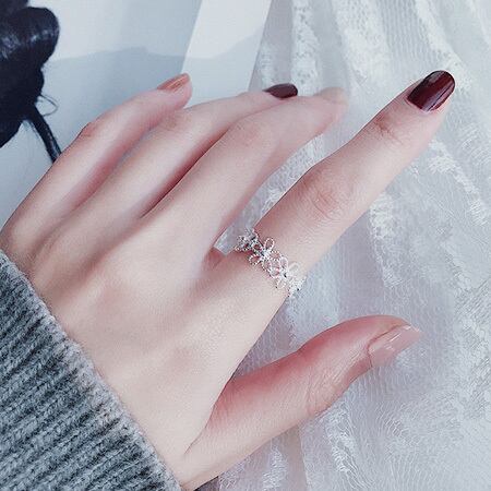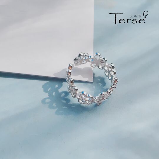 Terse 手編みのレースを指にまとったような繊細なデザイン 連なった透し彫りフラワーが女性らしいリング可愛らしく華やかに魅せてくれます サイズフリー ミル打ち 普段使い レディース 二次会 お呼ばれ お出かけ 一つで主役級の存在感 rs0195as