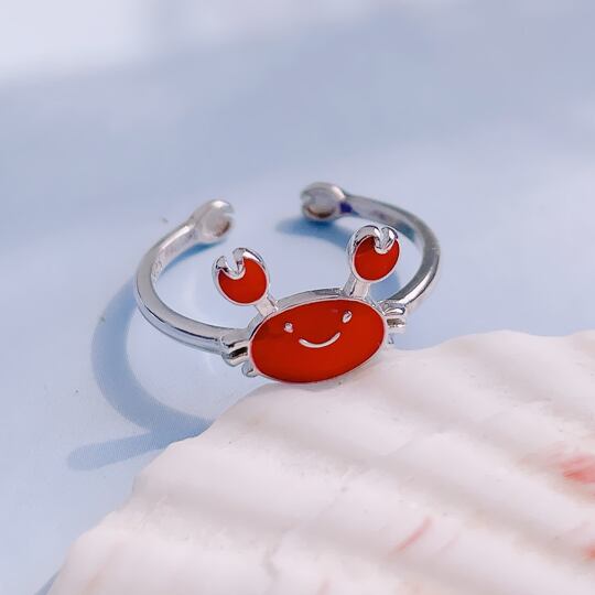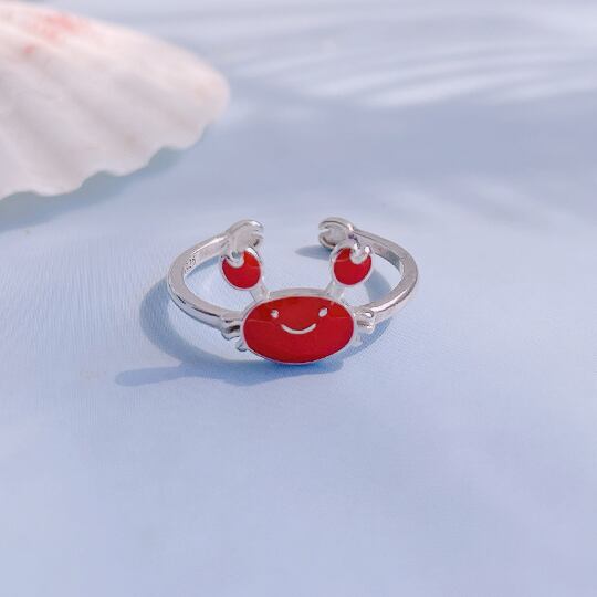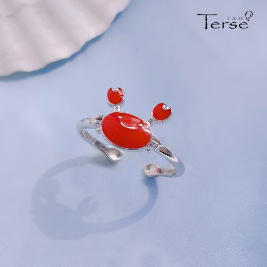 Terse映えるシルバーリング☆お出かけが楽しくなる?にっこりカニさん 指輪 サイズフリー フォークリングレディース 赤 レッド エナメル 面白い ユニーク 夏 サマー 海 浜辺 キュート 蟹 星座 かに座 誕生日 人気 イベント パーティー デート rs0204as 休み
