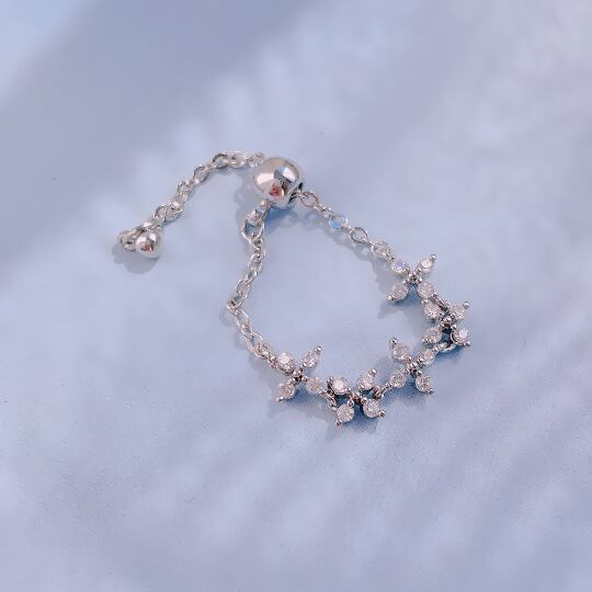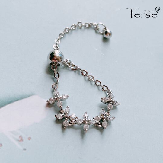 Terse 繊細な小花が寄り添うように咲いてる キュービックジルコニア 指輪 人気フラワーリングをCZダイヤで可憐に仕上げました 手元に清らかな花を咲かせるチェーンリング フリーサイズ アズキチェーン スライド式 プレゼント お出かけ 普段使い rs0220as