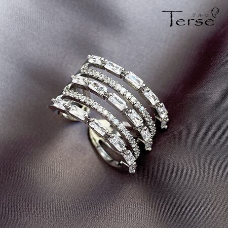Terse 5つのリングが連なったデザインフォークリング 着用すると自然とボリュームがでて、立体的にCZダイヤが輝きます 小様々な光りの集まりによって夜空に生み出されたひとすじの光の川 指が細く長く見える効果も キュービックジルコニア サイズフリー指輪 rs0243a