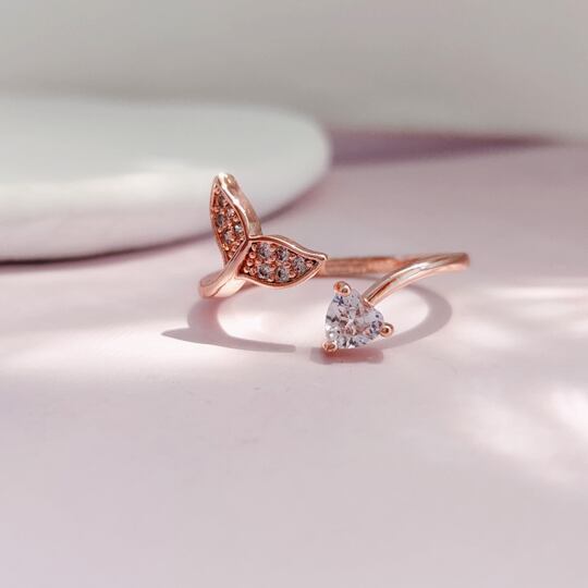 Terse 幸運の象徴 ホエールテール CZダイヤ指輪 ハワイアン アクセサリー クジラ 尾 海の好きな方へ、また身につけるお守りとしても プレゼント とても繊細なおつくりの 美しいキュービックジルコニアフォークリング プレゼント (クジラの尻尾) お洒落rs0264apg