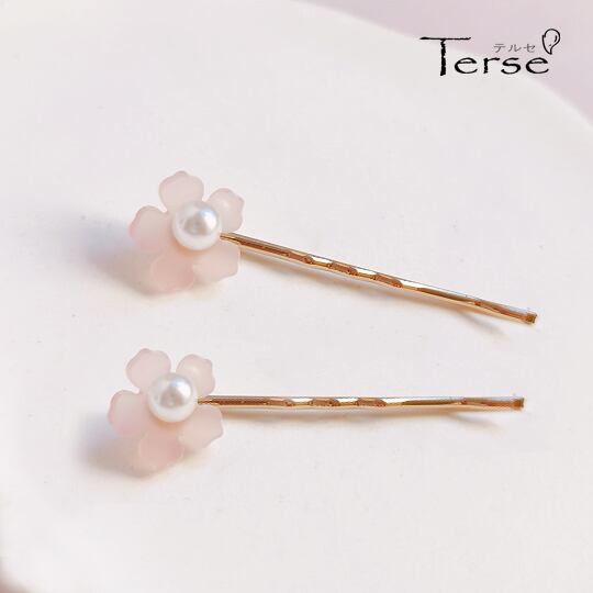 Terse春の装いにぴったりアクリル製のさくらヘアピン2点セット 透明感のあるデザインが特徴で、髪に自然な輝きを与えます ペアでの販売となっており、左右対称のスタイルを楽しむ 桜のモチーフが優雅さを演出し、日常のヘアスタイルを華やかにまとめます ha0173a