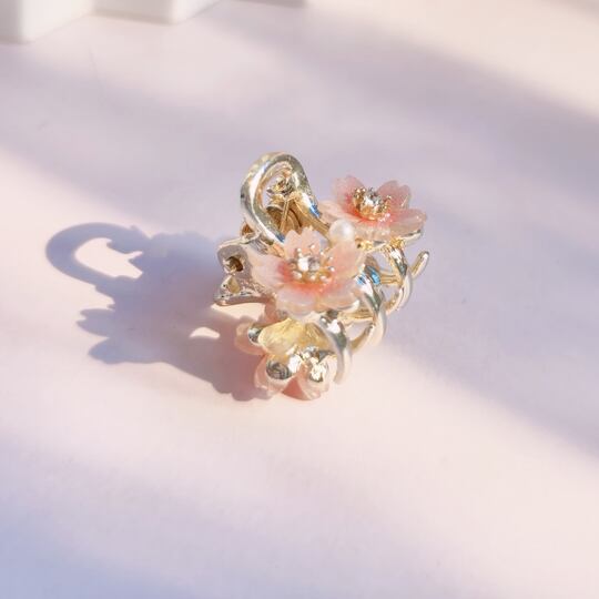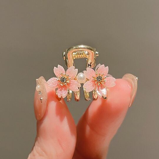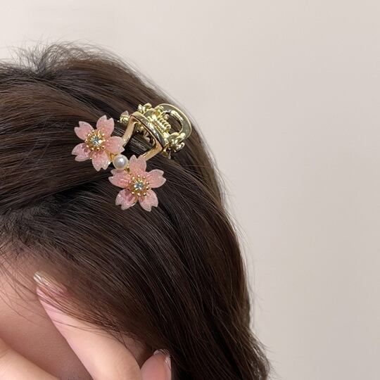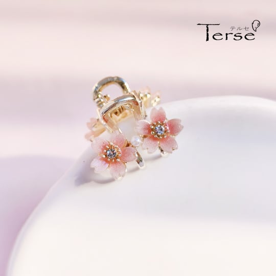 Terse春の訪れを感じさせる桜モチーフのミニバンスクリップ 小さめながらも、髪の長さを問わず様々なヘアスタイルに対応し、サイドの髪をまとめるのに最適 季節感を演出するこのヘアアクセサリーは、日常の装いに華やかさを添え 春の装いにぴったりのアイテム ha0170a