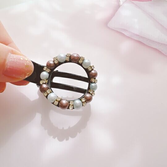 Leafy レトロな雰囲気を醸し出すフェークパールヘアクリップ 思わずうっとり パールとラインストーンを飾ってスペシャルなルックに仕上げたリング状のバレッタ ヘアスタイルに何かが物足りないなと思ったら、このバレッタをつけてみて 大満足のルックが完成 ha0160a