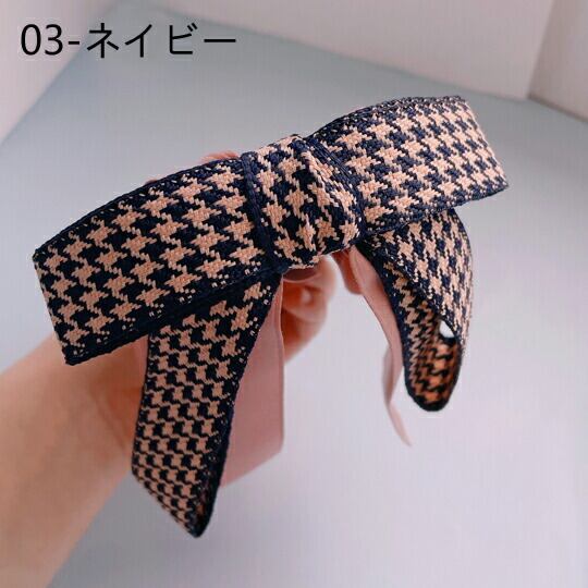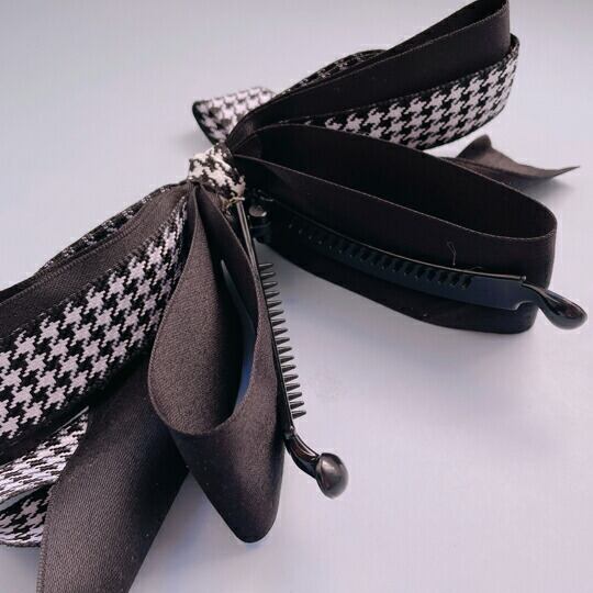 大人気の大きめリボンのバナナクリップ 千鳥格子柄のリボンが可愛い 大きめのリボンだからロングヘアにもバッチリ決まる存在感抜群のアクセサリー クリップにはリボンで装飾された 横から見てもキレイなデザイン どんなコーデにも相性良く、幅広く活躍 ha0159a