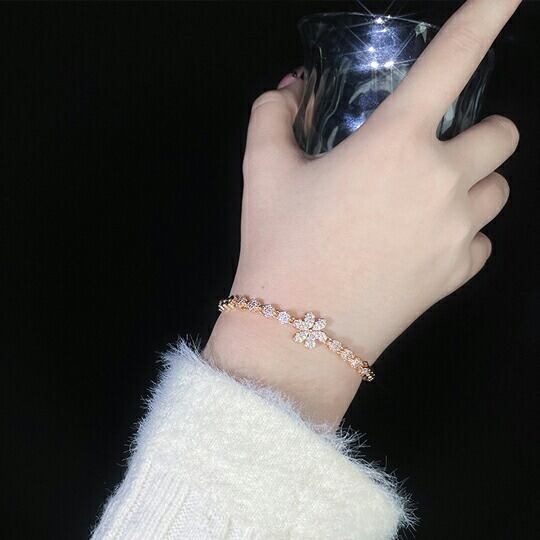 Terse高級感あふれるCZダイヤを敷き詰めたフラワーブレスレット 美しい花のデザインが手元を華やかに彩り、光を受けてきらめ 上品で洗練されたデザインは、フォーマルな場面でもカジュアルな装いにも合わせやすく、様々なシーンで活躍 優雅さをプラスする一品 bl0110a