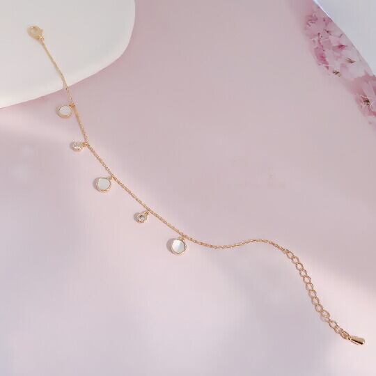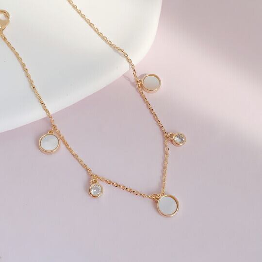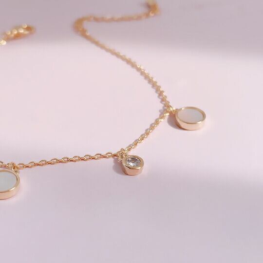 Terseマザーオブパール&CZダイヤをリズミカルにあしらったブレスレット 身につける人の一つひとつのしぐさを美しく演出します 白蝶貝を繋ぎチェーンブレスレット 丸い白蝶貝がドットのように見えて可愛らしい コーディネートに合わせて長さを調節できます bl0096ag