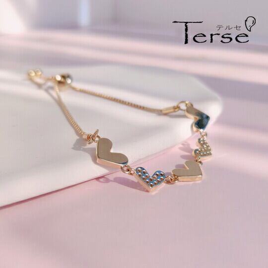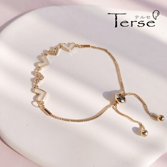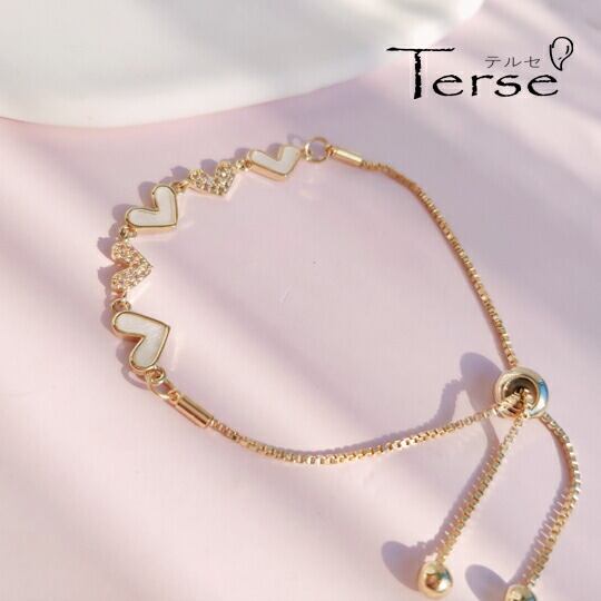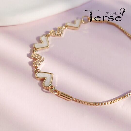 Terse 微妙なアンジュレーションのあるハートモチーフに白蝶貝&CZダイヤをセッテイングしたブレスレッ キュービックジルコニア光沢と白蝶貝のナチュラルな輝きを楽しめるアクセサリー つなぎ5つハートの手首と連動した動きも楽しめます マザー オブ パール bl0093a