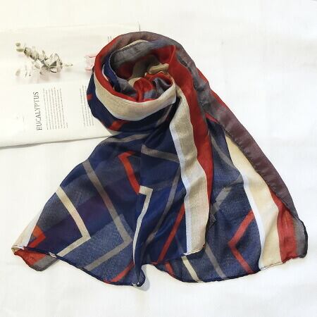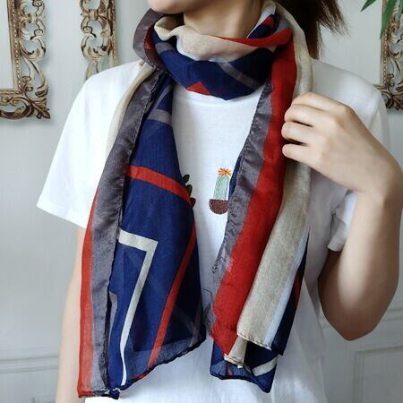 エレガントな幾何学柄の大判ストール ネイビー 大判サイズ 大判ストール ショール 小顔効果 UVカット マフラー 巻き物 紫外線対策日焼け防止 肩掛け 日よけ エレガント 薄手の生地でやわらかく心地よい巻き心地を楽しめるアイテム ma0106a