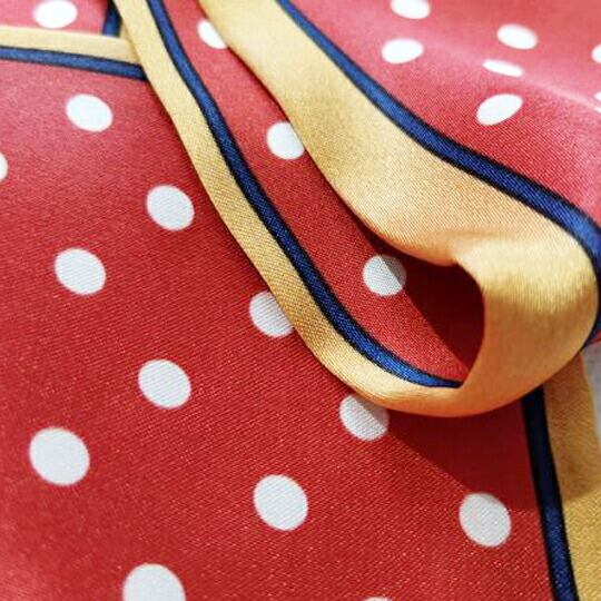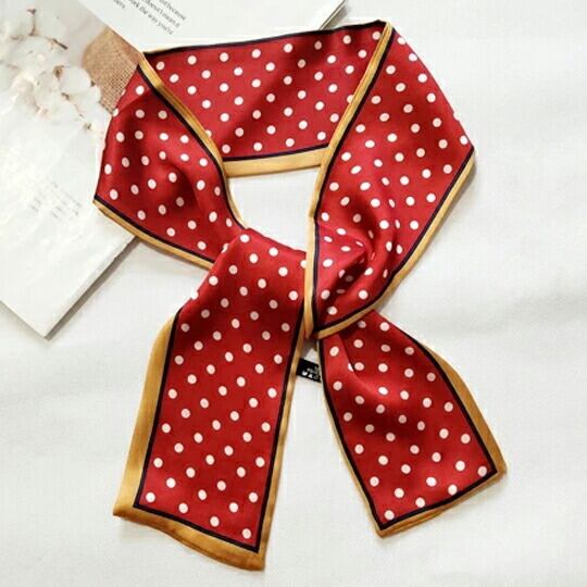 可愛いドット柄のボウタイスカーフ 大人っぽいデザインです 首にそのまま巻けるので簡単 衿付きのシャツにプラスしたり、鞄に付けてもかわいい マフラー コーデネートしやすい水玉柄 レッド 赤 レディース 普段使い ma0117a