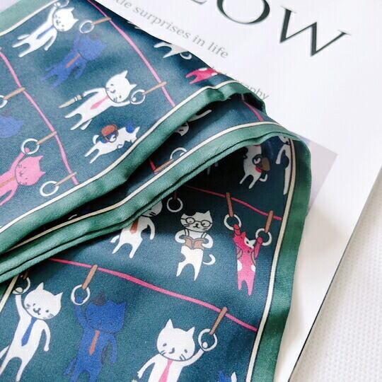 前で差し込むタイプの簡単なネコモチーフスカーフ可愛い 猫柄 遊び心いっぱいで、個性的なおしゃれを楽しめます洋服やバッグのアクセントに、ヘアアレンジにと、キュッと結ぶだけで気軽にアレンジ使いできる ボウスカーフ ハロウィン ブルー ma0119agr