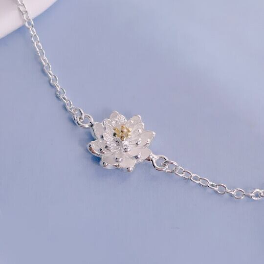 Terse 立体感があり、花びらの配置は蓮の花モチーフブレスレット 花言葉 「清らかな心」のは、ハスが泥水の中から生じて、気高く清らかな花を咲かせることにちなみます ハス 蓮 睡蓮 ヒツジグサ シルバー925 蓮 ハス 仏教 ギフト 7月未草 bl0083a