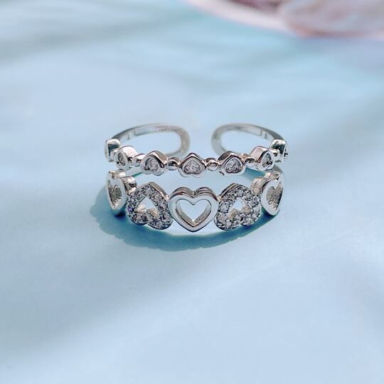 Terseキュートなハートが可愛い2連CZダイヤリング ハートリングにもジルコニアを配置しラブリーなだけでなく華やかさも感じさせます 派手になりすぎることなく、多彩なコーディネートに取り入れやすい 大人可愛い オンオフ問わず プレゼント rs0288as