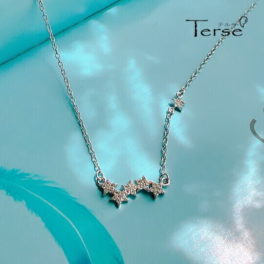 Terse 6つのジルコニアの輝きが上品に胸元を飾るネックレス 散りばめられた小さなシルバースターがかわいい 星形 夜空 流星 レディース プレゼント ギフト ホワイトデー 誕生日 記念日 宇宙 sn0050a