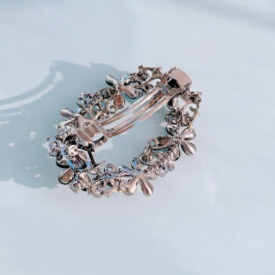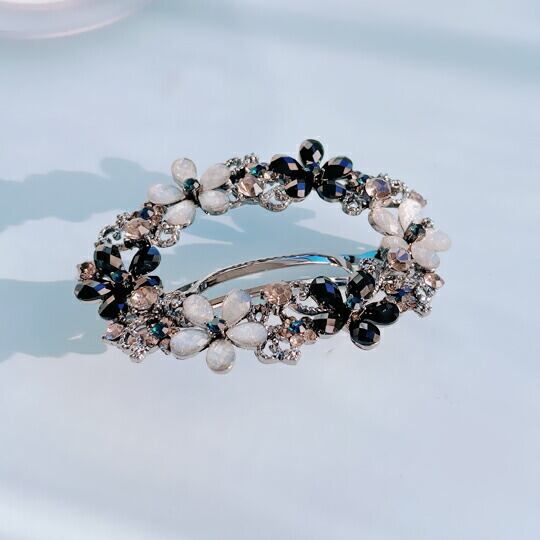 Leafy艶めくフラワーと輝きを放つビーズが、可憐なうしろ姿に仕上げるバレッタ オーロラのように光の当たり具合で異なる表情を見せるビーズが、華やかな雰囲気を演出 結婚式やパーティーだけでなく、お子様の学校行事やデイリーでも合わせやすいアイテム ha0151agy