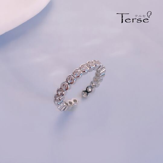 TersCZダイヤが22粒並ぶ、シンプルだけども控えめな華やかさがあるデザインした指輪 シルバー色で合わせることで、キュービックジルコニアの輝きがより一層引き立ちます 1本でサラッと着けても、お持ちのリングと重ねても 4月誕生石 シンプル オンオフ rs0290as