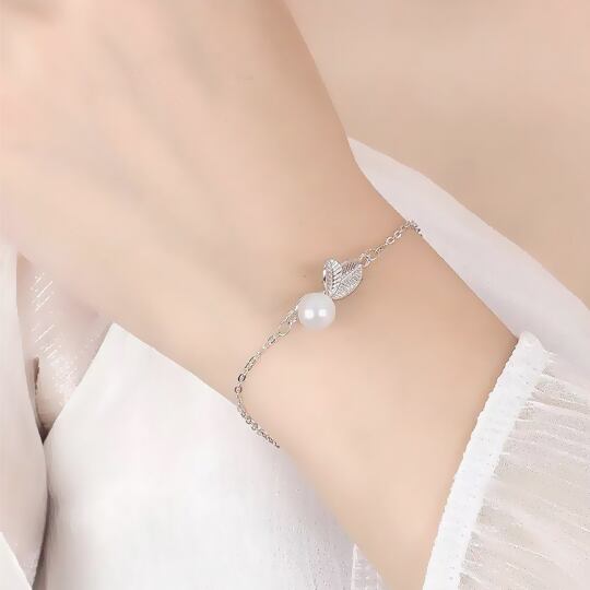 Terse 女性の繊細な腕にピッタリ☆ミニパールからぴょこんと飛び出した双葉モチーフのチェーンブレスレット レディース 発芽 葉っぱ リーフ 植物 生命力 春 スプリング うさぎの耳 お出かけ デート お呼ばれ パーティー 食事会 女子会 普段使い プレゼント bl0069a